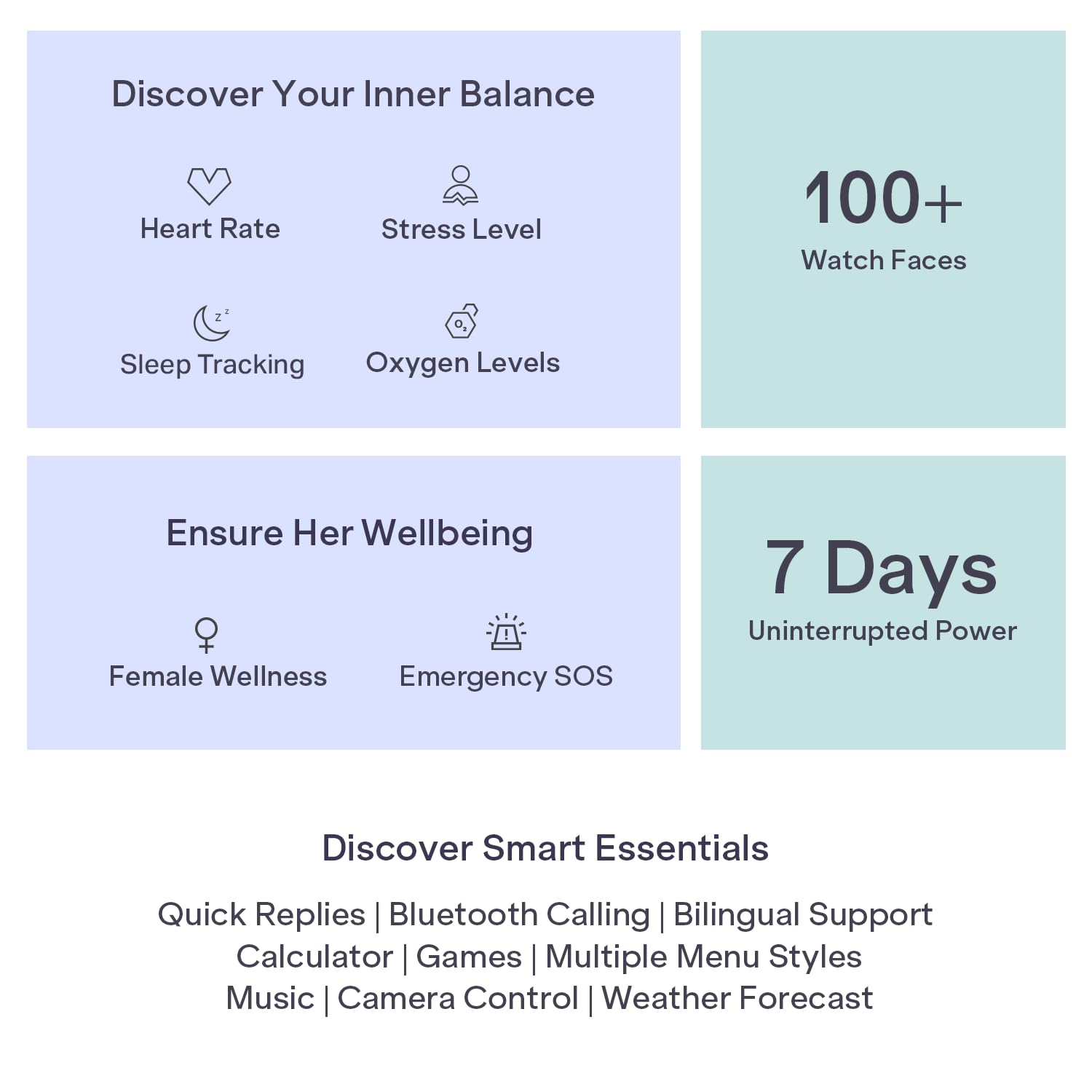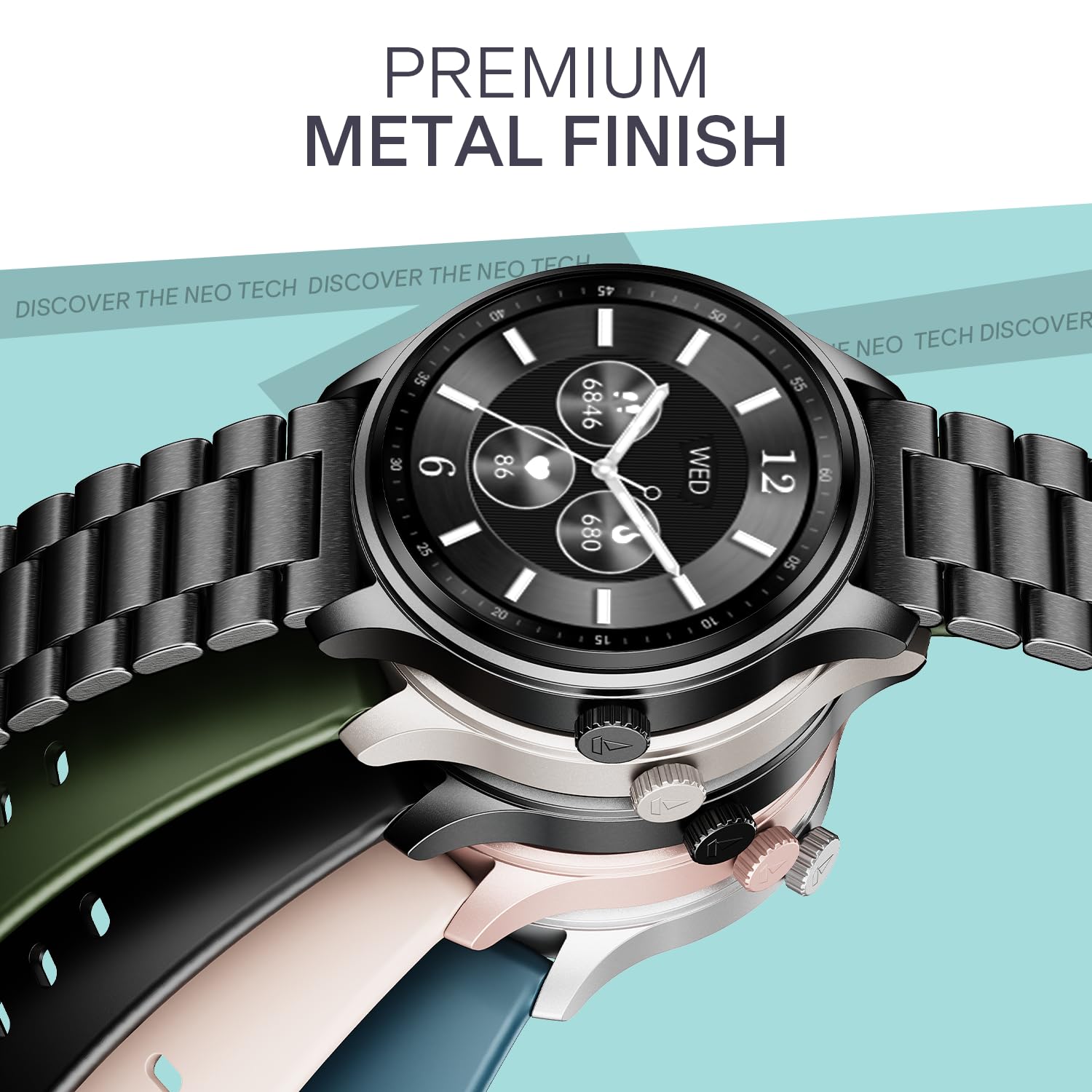 Health & Wellness Tracking: At the core of Lunar Discovery Neo is the high-performance sensors, powering a premium smartwatch experience. Get reliable results for heart rate, blood oxygen monitoring, and guided breathing exercises. It also tracks your sleep, everyday stress and keeps a consistent check on your physical, mental, and emotional well-being.