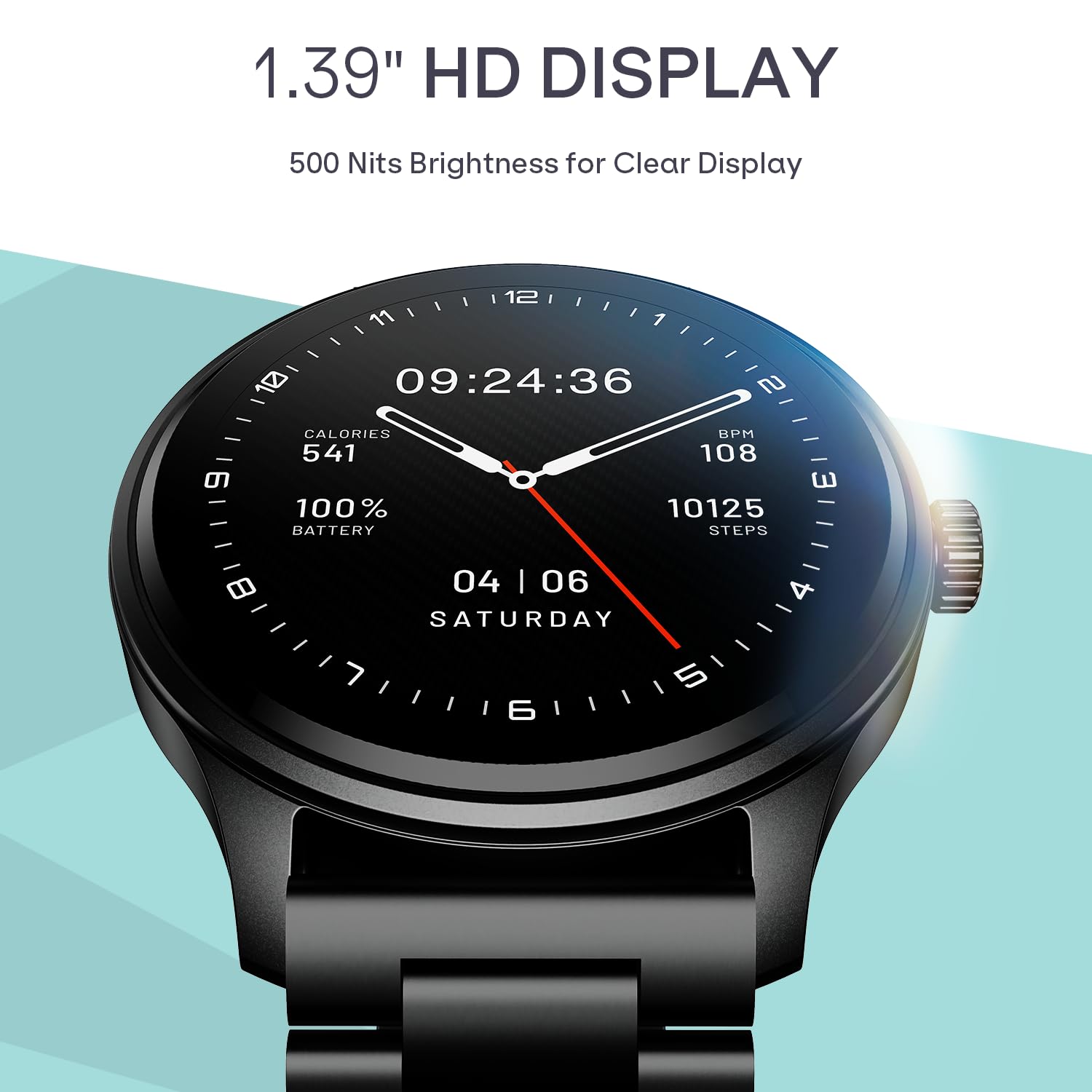 1.39” (3.53 cm) Bright HD Display: Introducing the boAt Lunar Discovery Neo, the next-gen smartwatch with a large 1.39” (3.53 cm) display for crystal-clear readability, indoors or out. With 240×240 HD resolution, 500 nits brightness, it ensures exceptionally rich colour contrast, sharp visuals, and quick screen access.