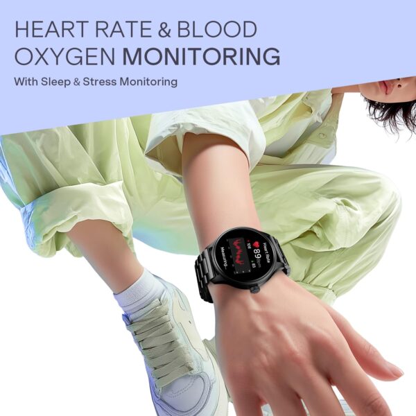 The smartwatch also supports Bluetooth Calling, enabling you to make and receive calls directly from your wrist without needing your phone in hand. This makes it very convenient for busy users, professionals, or those who travel frequently.