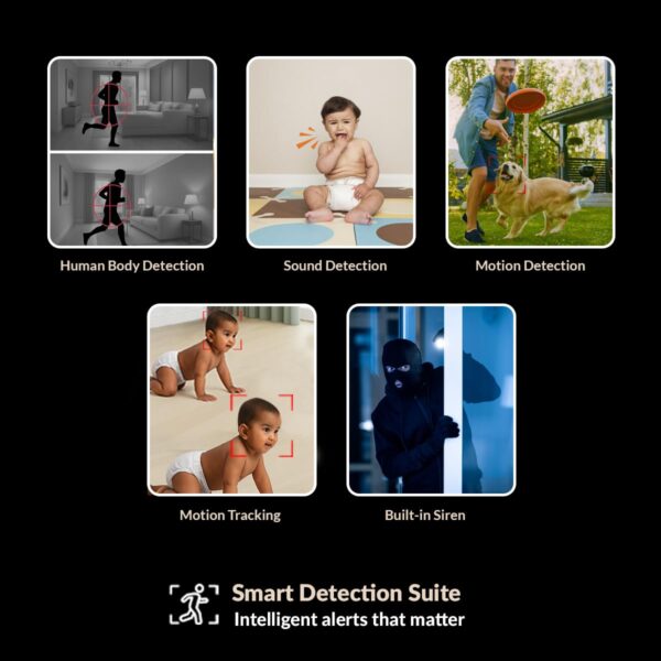 - AI MOTION DETECTION & TRACKING: Equipped with AI-powered motion tracking, this Wi-Fi camera detects human movement and follows it automatically, sending real-time alerts through the ezyKam+ app to your smartphone.