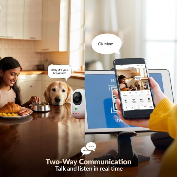 The CP PLUS CP-E44Q 4MP Full HD Smart Wi-Fi Security Camera is a feature-packed solution for indoor surveillance, offering 360° Pan & Tilt coverage, motion detection, and motion tracking for real-time alerts and complete visibility. With sharp 2560×1440 resolution, this 4MP CCTV camera captures every detail in Full HD and provides clear footage even in low light with 15M IR night vision. The built-in two-way audio system allows seamless communication through the ezyKam+ mobile app, making it ideal for homes, offices, or small businesses. Designed for easy wireless installation, this Wi-Fi camera connects quickly to your 2.4GHz network and supports SD cards up to 256GB for local video storage without monthly cloud costs. Enhanced with CTC Cyber Secure Technology, it ensures secure data encryption and privacy. A standout feature, Press to Call, lets users initiate direct video calls from the camera itself—perfect for staying in touch with family. Compatible with Alexa and Google Home, this smart indoor camera allows hands-free voice control on smart displays. Whether you’re securing a living room, retail counter, or workspace, the CP PLUS E44Q smart camera delivers reliable, intelligent, and secure surveillance.