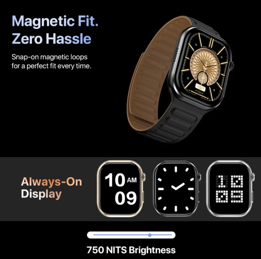 • 2.02″ AMOLED Square Display with 240*296 px High Resolution AI Search and AI Watchface compatible