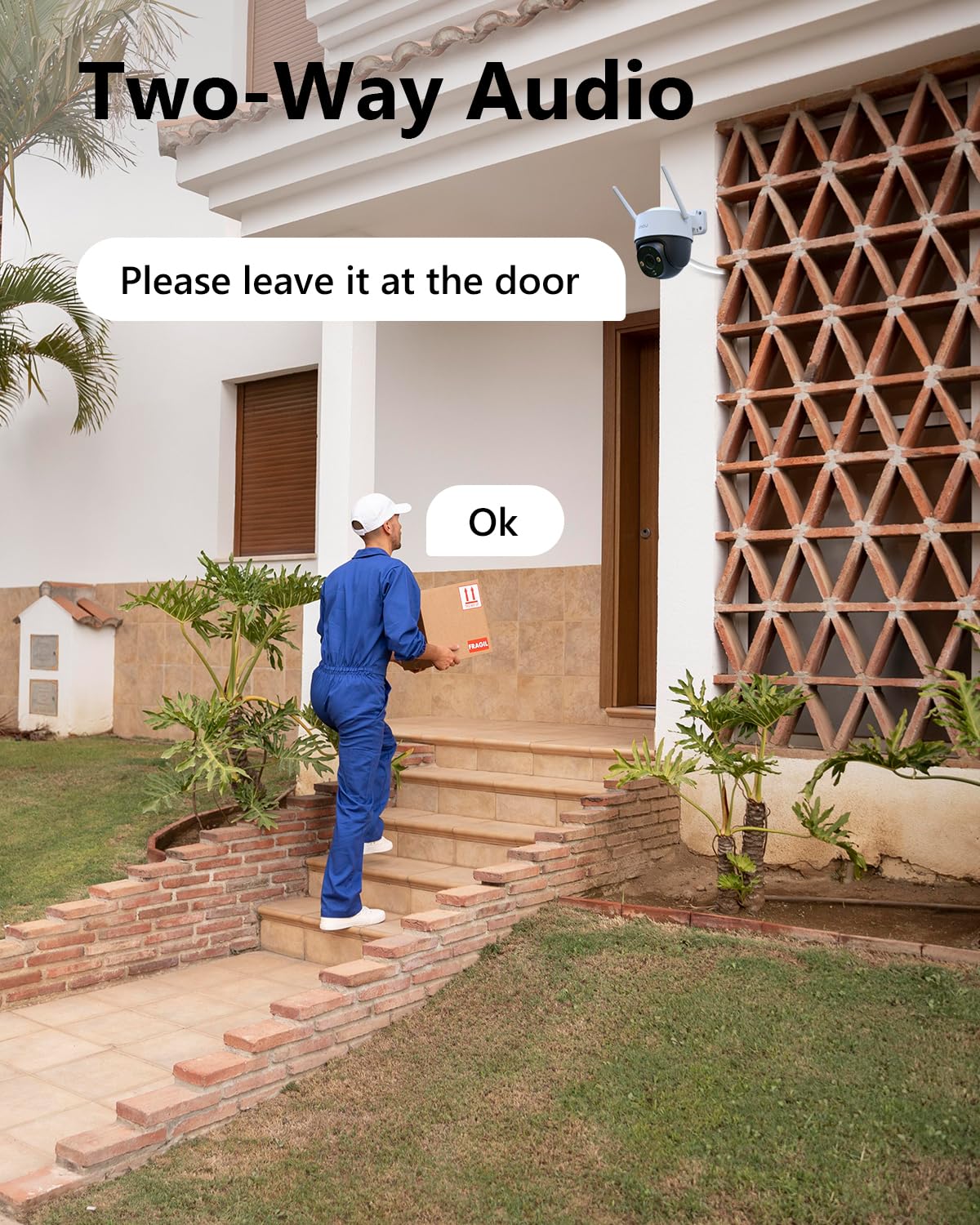 5MP Full HD Video Quality: Enjoy sharp, detailed images and videos with 5MP resolution for enhanced surveillance. AI Human Detection: Advanced AI technology ensures accurate alerts by distinguishing human movement from other objects. Two-Way Audio: Communicate effortlessly with family members or pets using the built-in microphone and speaker. Night Vision Capability: See clearly in the dark with night vision, ensuring 24/7 security for your home or office. Motion Detection Alerts: Receive real-time notifications on your smartphone when motion is detected, keeping you informed.