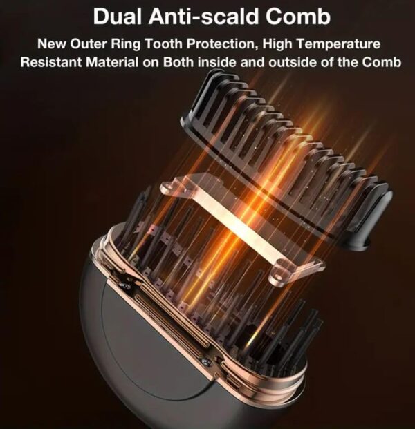 • Design includes inbuilt comb for perfect straightening, maintains a constant temperature, anti scalding tooth comb,