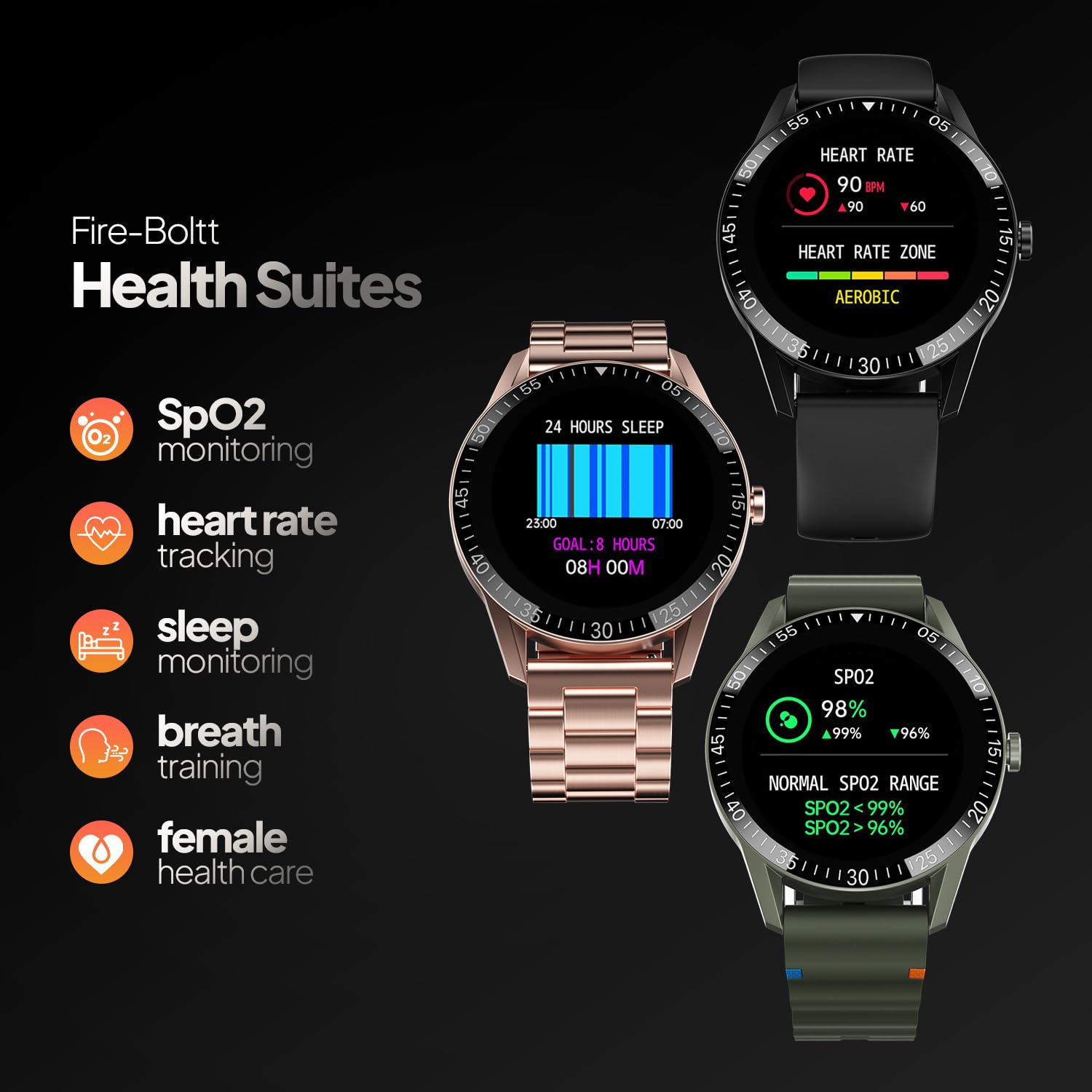 One of its standout features is Bluetooth Calling, allowing users to make and receive calls directly via the built-in speaker and microphone. For those focused on wellness, the watch serves as a comprehensive health suite, offering real-time SpO2 (Blood Oxygen) monitoring, 24/7 heart rate tracking, and sleep analysis.