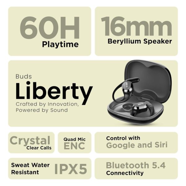 • 🎵 Immersive Audio Experience: Experience multidimensional sound that puts you at the center of your audio world with Buds Liberty’s 360Spatial Audio Experience. These Open Ear Earbuds (OWS) transforms your listening experience, ensuring every detail surrounds you in perfect harmony. Enjoy immersive surround sound and detailed, rich audio quality, thanks to the powerful 16mm beryllium speakers that deliver an unparalleled auditory experience.