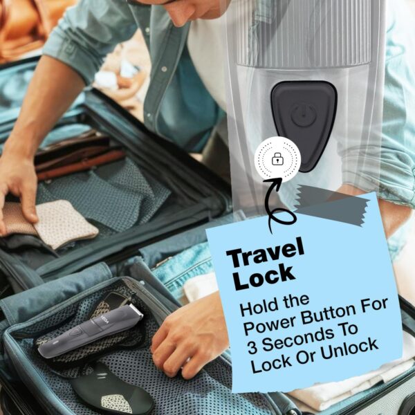 • Travel Lock: This is one of the Vega trimmers for man for on the go use without hassle as the beard trimmer features a travel lock. Simply press and hold the power button for 3 seconds to lock or unlock this lightweight beard trimmer, preventing accidental power-ups and ensuring safe storage during travel.
